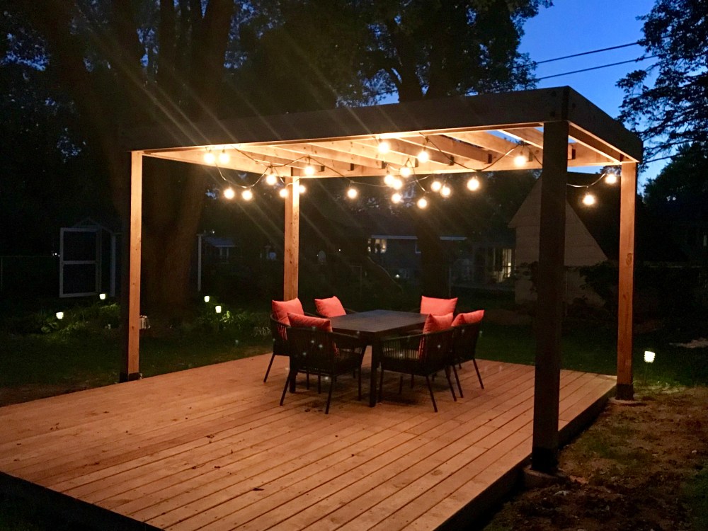 To finish off the project, we had electricity run to the pergola and hung lights.